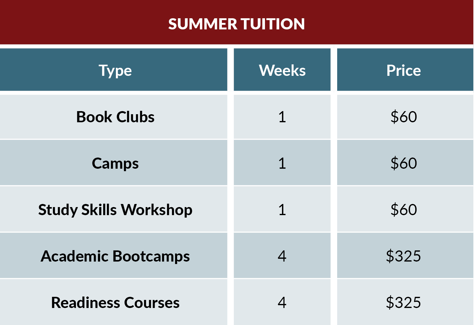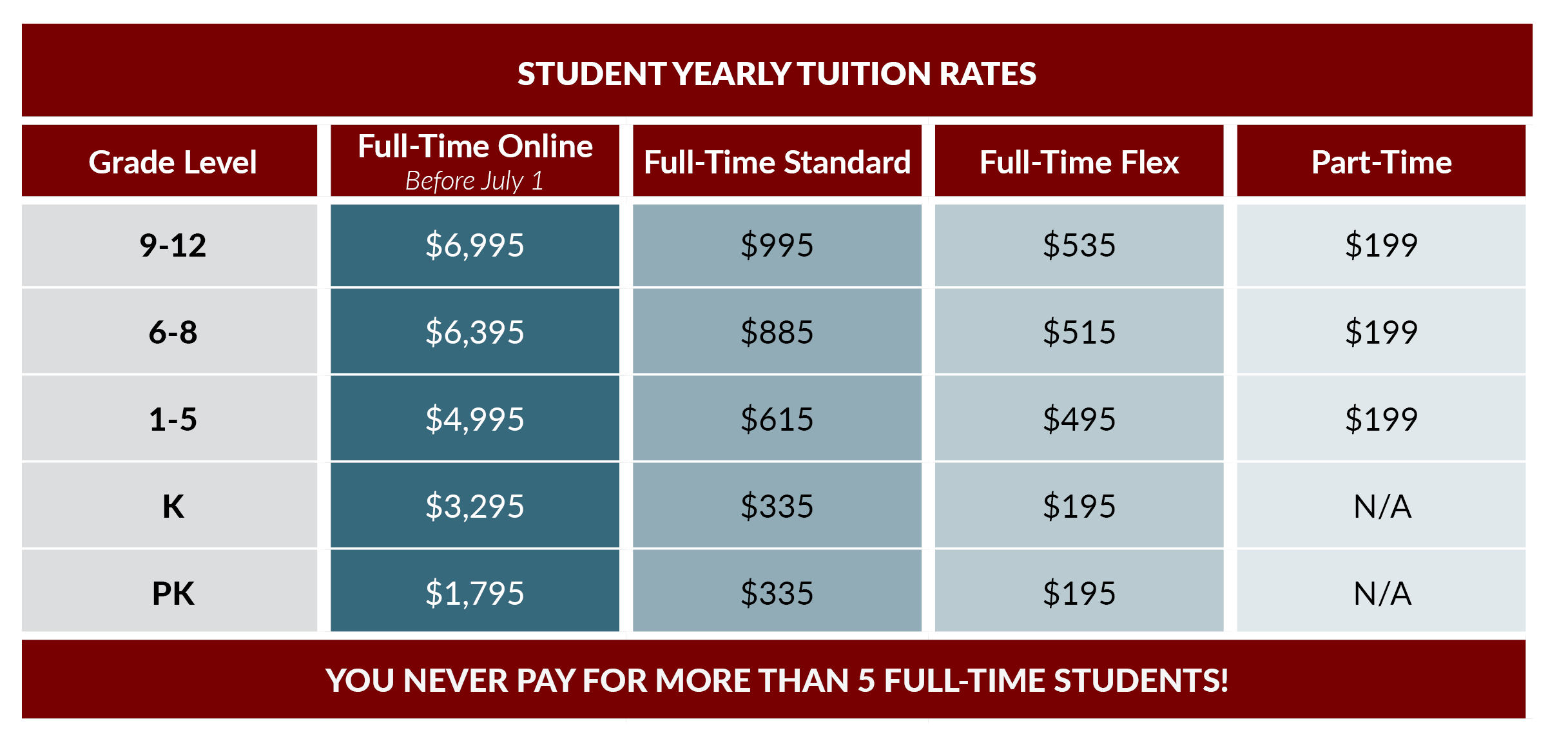 Enrolling 5 or more student? See our family discount here or talk to an admissions counselor to learn more.